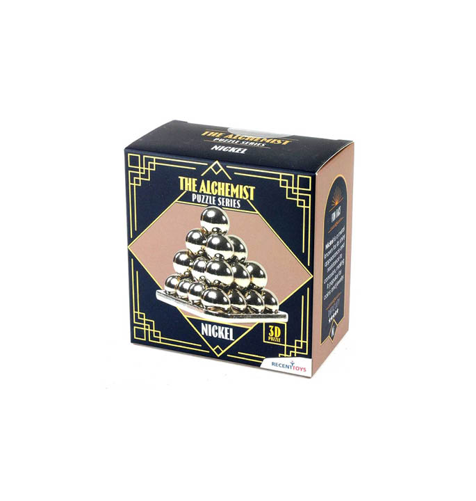 Stap in de wereld van transformatie met de The Alchemist Nickel puzzel van Recent Toys. Deze metalen breinbreker daagt je uit om alle nikkelkogels op elkaar te stapelen tot een perfecte piramide op het meegeleverde grid — eenvoudiger gezegd dan gedaan!