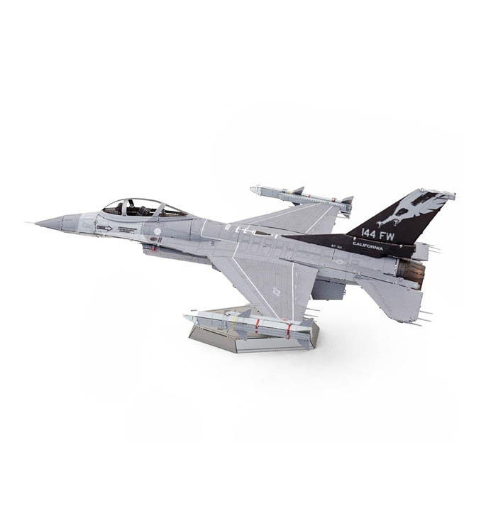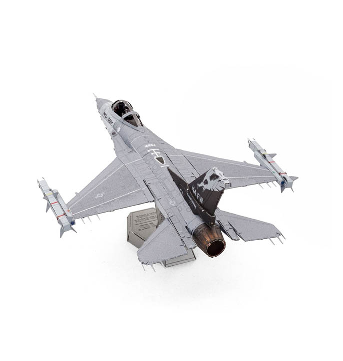 Metal Earth setzt die ikonische F-16 Fighting Falcon® in ein detailliertes Modell aus Metall um. Dieses leichte, einmotorige Kampfflugzeug kann Geschwindigkeiten von bis zum Doppelten der Schallgeschwindigkeit erreichen. Das Flugzeug wurde ursprünglich entwickelt von General Dynamics entwickelt und später produziert von Lockheed Martin und anderen Lizenznehmern hergestellt. Heute ist die F-16 eines der meistgenutzten Militärflugzeuge der Welt und gehört zu den Luftstreitkräften von mehr als 25 Ländern. Dank seiner Geschwindigkeit, Manövrierfähigkeit und Vielseitigkeit ist das Flugzeug zu einer Ikone der modernen Luftfahrt und zu einem beliebten Thema für den Metallmodellbau geworden.
