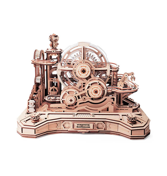 Das Tachometer 3D-Puzzle aus der STEM Lab-Kollektion von UGEARS ist ein voll funktionsfähiges DIY-Holzmodell eines Tachometers, fertig zum Zusammenbauen. Wenn der Hebel gedreht wird, wird die Bewegung übertragen, wodurch sich die Geschwindigkeit erhöht und die Doppelgewichte in der Zentrifugeneinheit bewegt werden. Je höher die Drehzahl ist, desto stärker verdrängt die Zentrifugalkraft die Gewichte und bewegt eine bewegliche Welle zum Schwungrad. An der Welle ist eine Skala angebracht; je mehr sich die Welle bewegt (höhere Drehzahl), desto mehr weicht der Pfeil von der Skala ab, was eine höhere Drehzahl anzeigt.