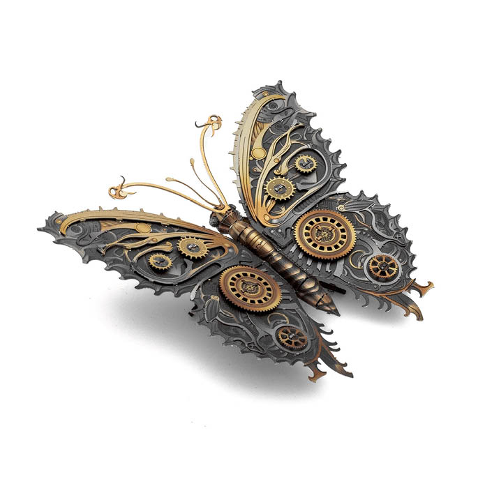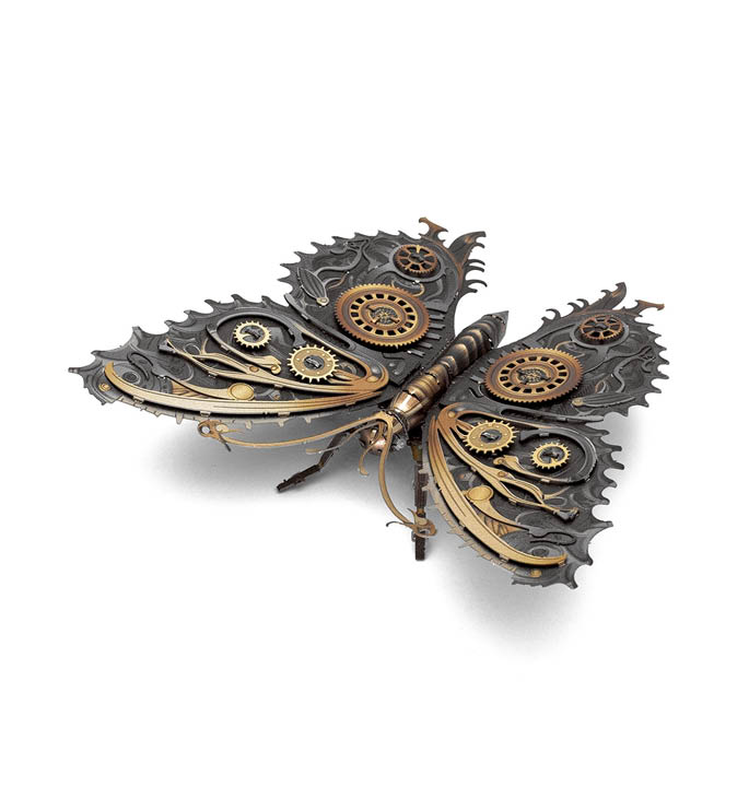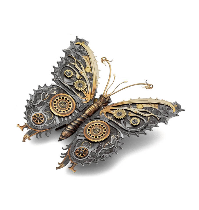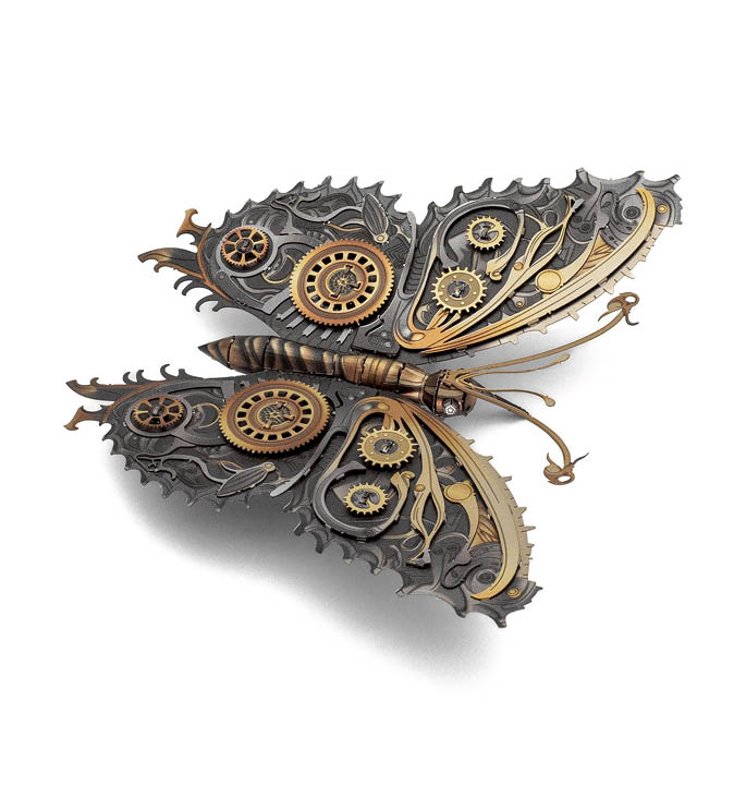 Metal Earth combines imaginative nature with Victorian-inspired engineering in the Steampunk Butterfly model kit. Made from finely etched, high-quality metal parts, this unique set lets you build a butterfly like you’ve never seen before. The end result is a striking decorative model in which graceful, organic shapes come together with detailed, industrial elements. This makes it a real eye-catcher for lovers of steampunk and special metal modeling.