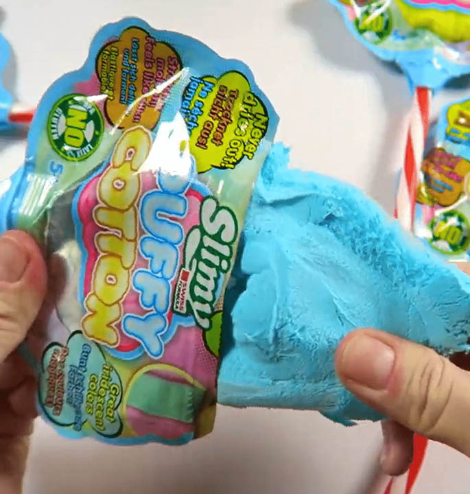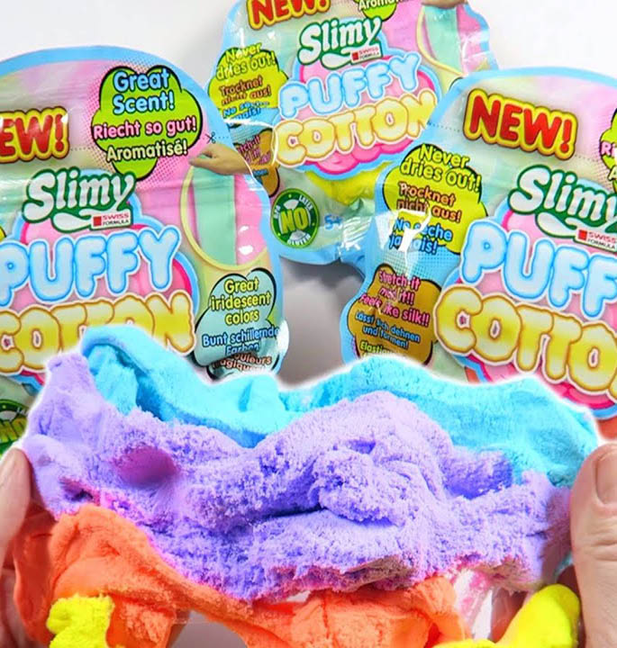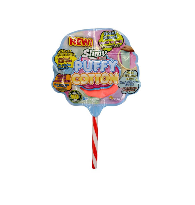 The Puffy Cotton Lollipop feels silky smooth, almost like real silk! Stretch, mold and shape the airy Puffy Cotton slime however you like. It smells great too! This neon-colored slime is super light in texture and has a sweet, pleasant scent. It feels exceptionally airy and soft, making playtime extra enjoyable. The Puffy Cotton Lollipop is available in five different colors: orange, blue, pink, purple and yellow. Please note that the color is chosen at random, making each purchase a fun surprise.