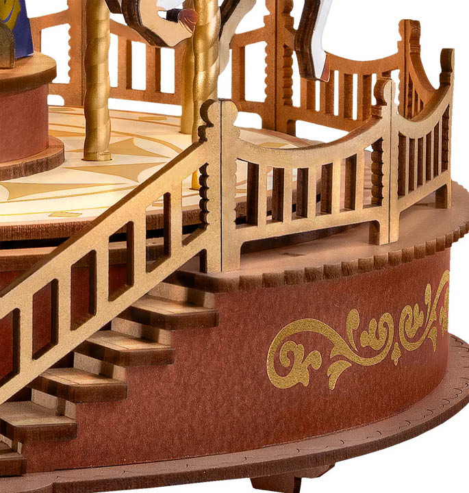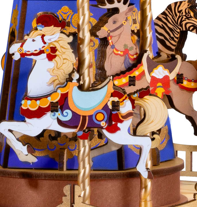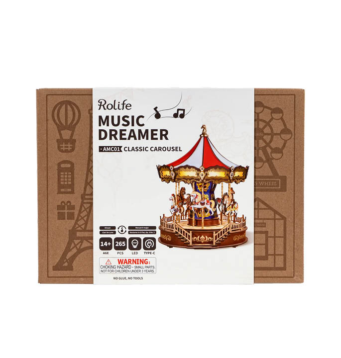 Robotime Rolife brengt je een eigen versie van de houten carrousel, compleet met klassieke muziek, waardoor de ervaring van dit avontuur nog intenser wordt. De Rolife Classic Carousel is vervaardigd door professionele ambachtslieden, van de verlichting tot de meest verfijnde details en biedt zo een ontwerp dat zowel nauwkeurig, stevig, duurzaam als elegant is. Het muzikale aspect maakt het geheel nog boeiender en helpt je helemaal te ontspannen.
