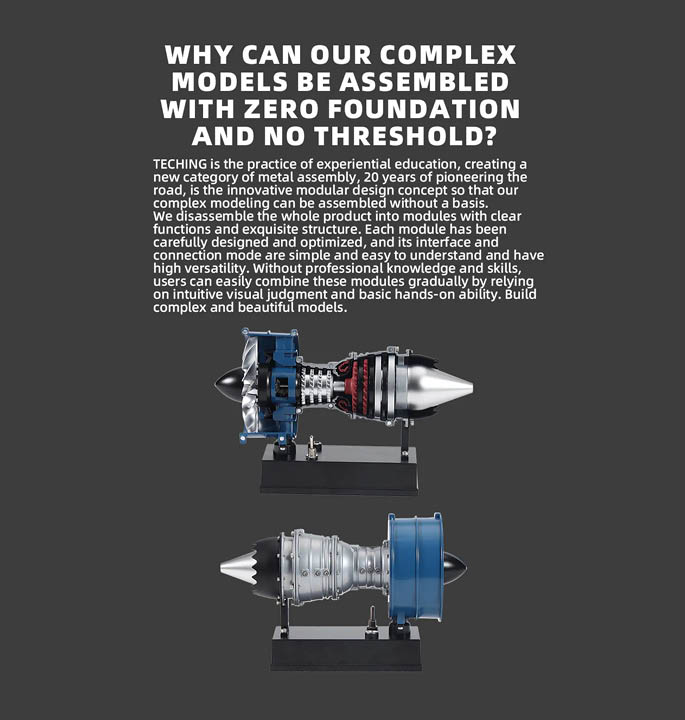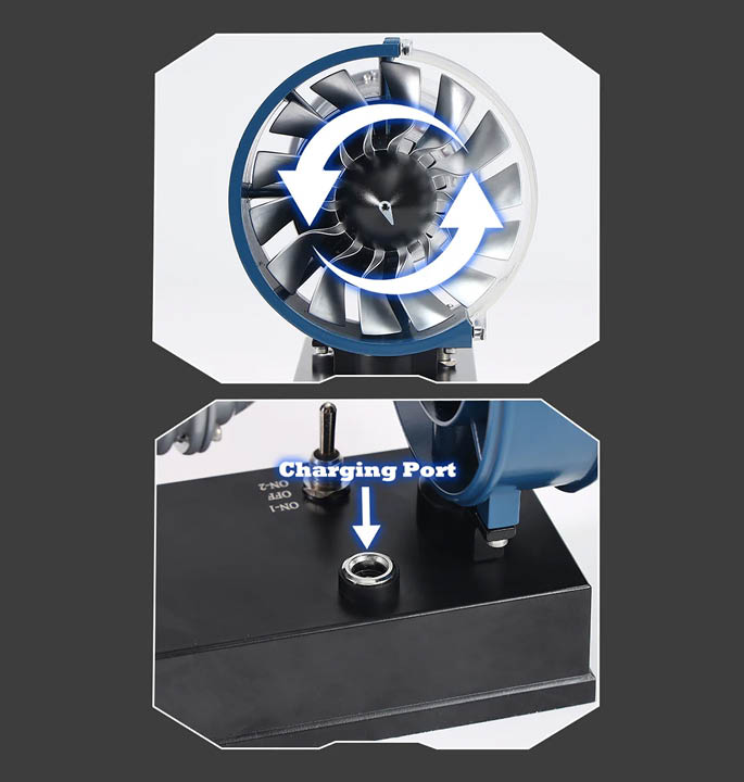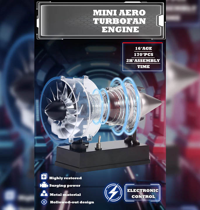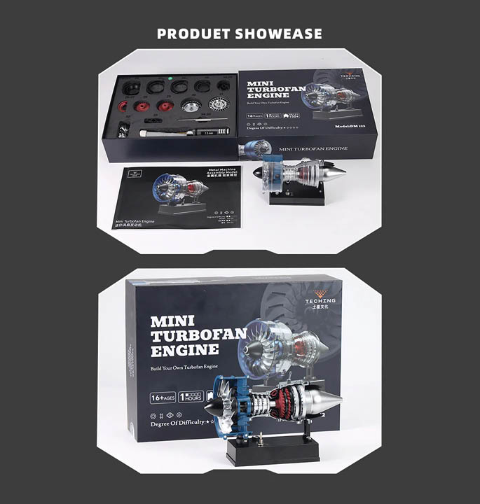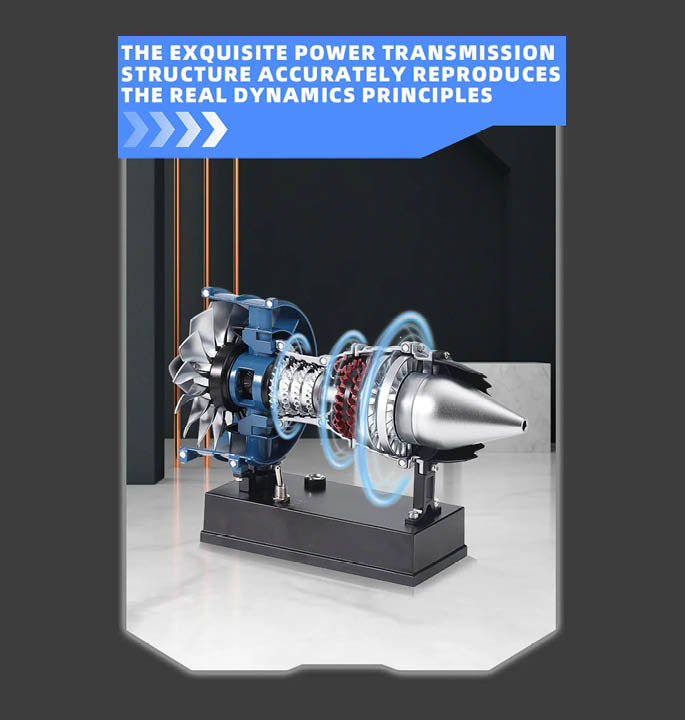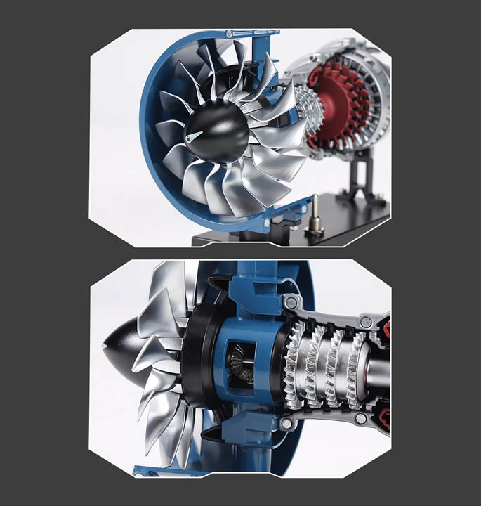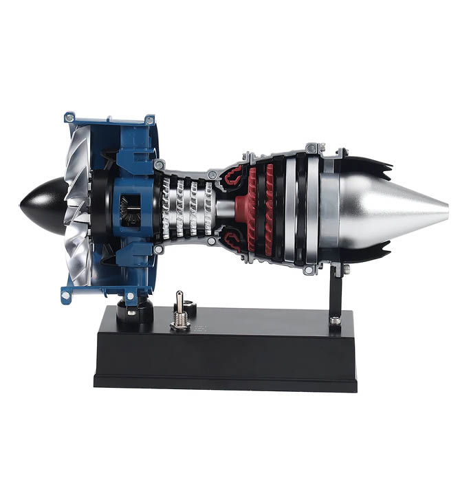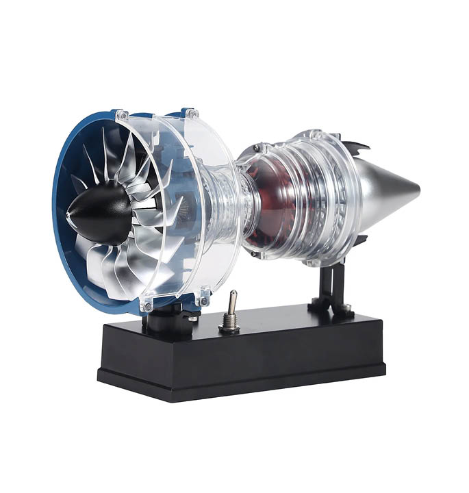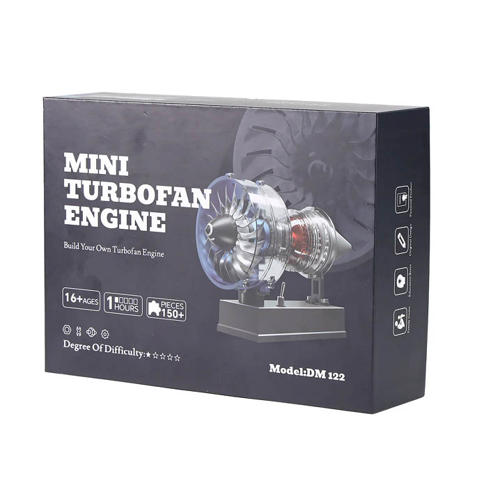 De Mini Turbofan Engine DM122 van Teching brengt de werking van een turbofanmotor tot leven in een compact en leerzaam model. Met zorgvuldig nagemaakte onderdelen zoals de ventilator, compressor, verbrandingskamer en turbine wordt duidelijk hoe lucht door de motor stroomt en voor voortstuwing zorgt. Dankzij een elektrische aandrijving komen de ventilatorbladen in beweging en is de interne werking goed te volgen door de transparante behuizing, die het geheel ook een strakke uitstraling geeft.